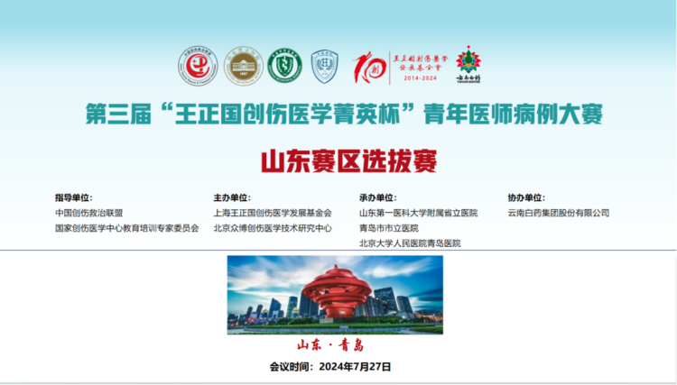 大赛由中国创伤救治联盟、国家创伤医学中心教育培训专家委员会指导,上海王正国创伤医学发展基金会和北京众博创伤医学技术研究中心主办,山东省第一医科大学附属省立医院、青岛市市立医院、北京大学人民医院青岛医院共同承办,云南白药集团股份有限公司协办。